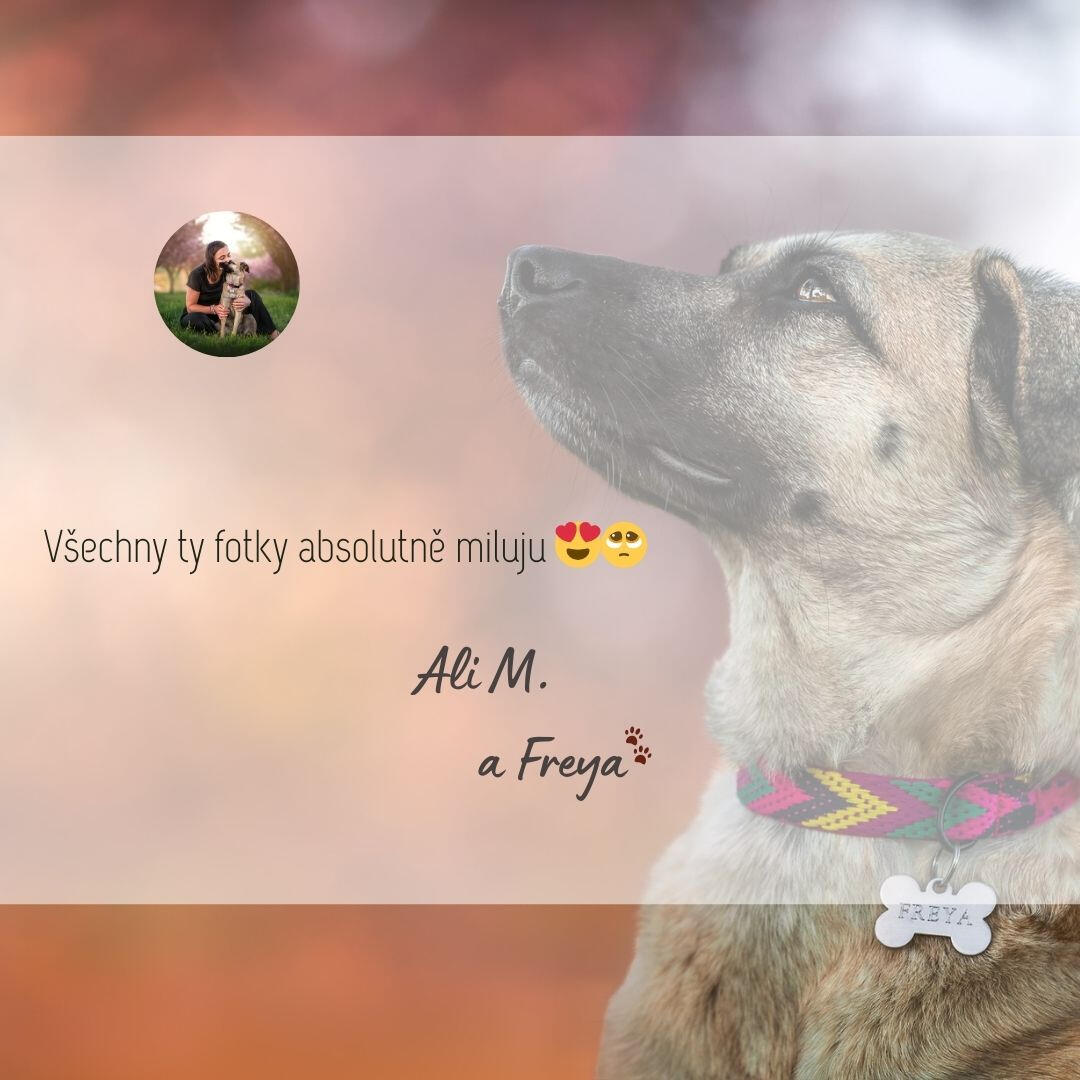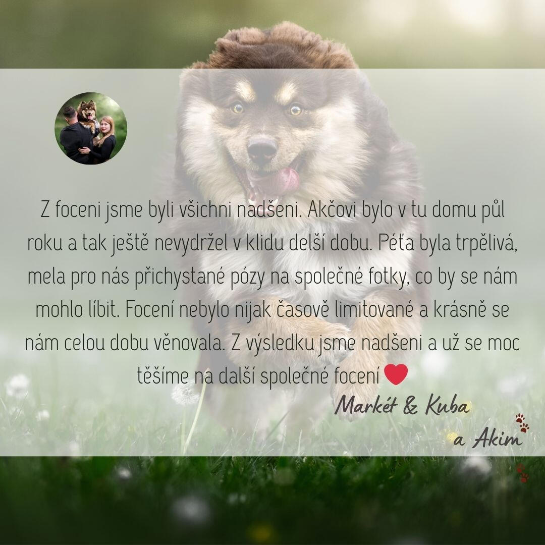 Během až 2 hodin v klidu a pohodě vytvoříme barevné, přirozené snímky plné emocí – fotky, ke kterým se budete rádi vracet a které uchovají vzpomínky na krásné chvíle s vaším chlupáčem i za mnoho let.👉 Počasí? Pokud nebude přát, termín bez problémů přesuneme.